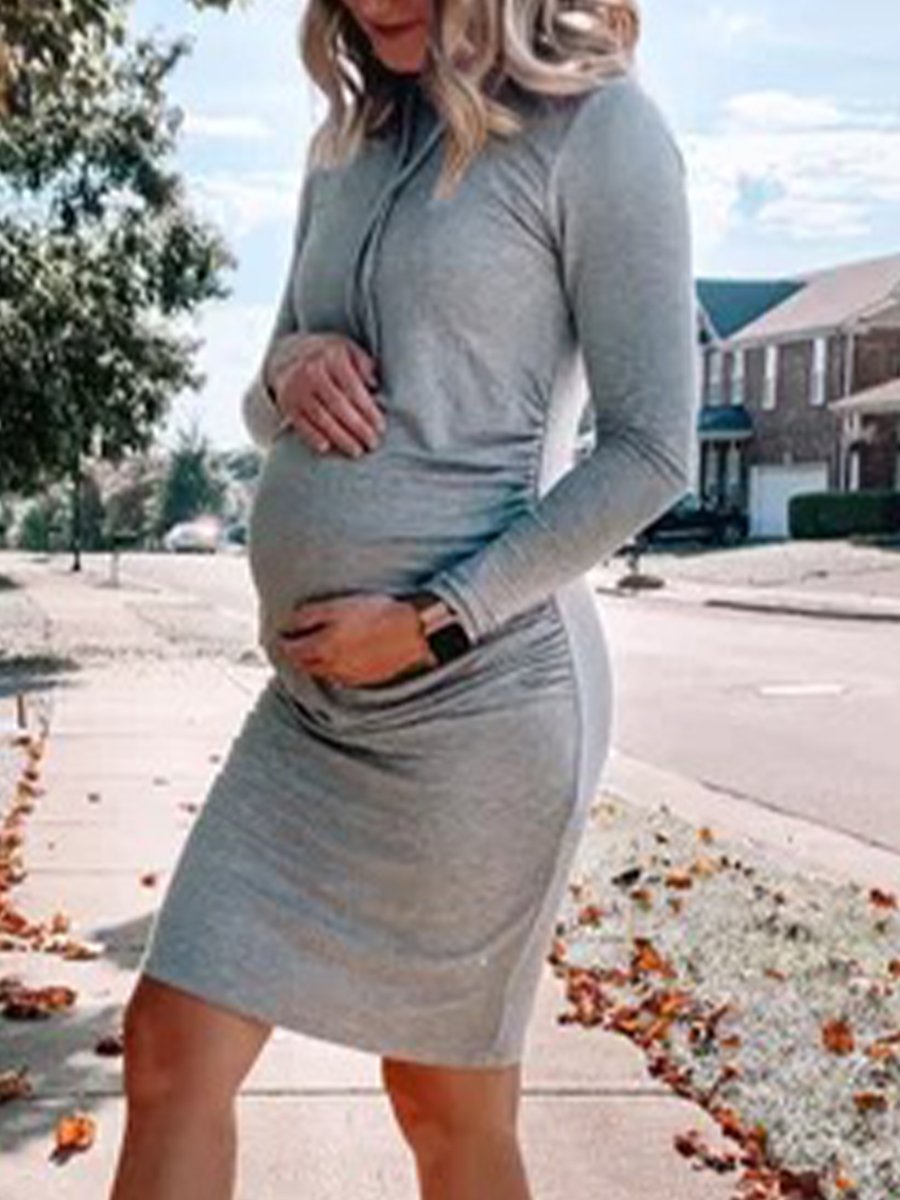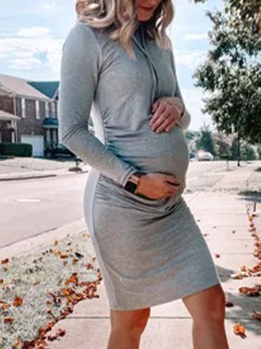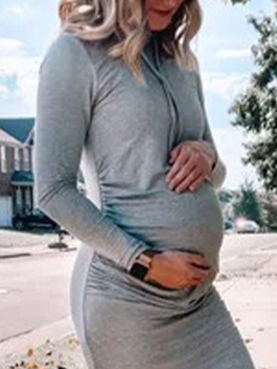 Product: Slim-fit Solid Color Casual Long-sleeved Maternity Dress