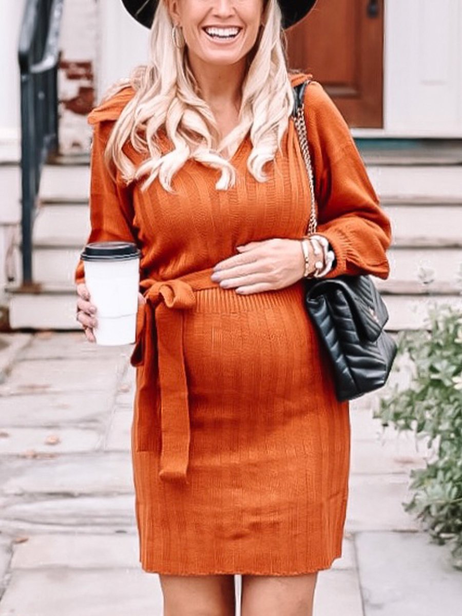 Product: V-neck Warm Simple Maternity Dress